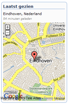Ik kan natuurlijk niet achterblijven en heb nu ook een locatie 'widget' op mijn contact pagina gezet. Deze widget gebruikt de positie van Yahoo Fire eagle. Ik kan vanaf mijn telefoon de positie updaten via het programmaatje "yofe!". Niet essentieel maar wel grappig.
